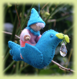 vogeltje draagt een kristal bij zich. Mooi wanneer je dit